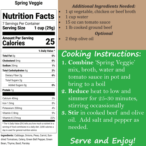 Ingredients: Sweet Potato, Great Northern White Bean, Kidney Bean, Corn, Sun-Dried Tomato, Onion, Chili Powder, Cumin, Garlic Powder, Salt, Black Pepper, Paprika, Cinnamon, Brown Sugar